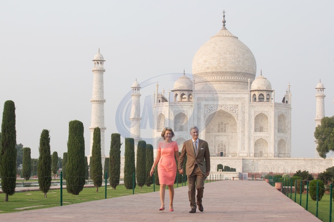 Krolowa Matylda i krol Filip pozuja przy Taj Mahal
