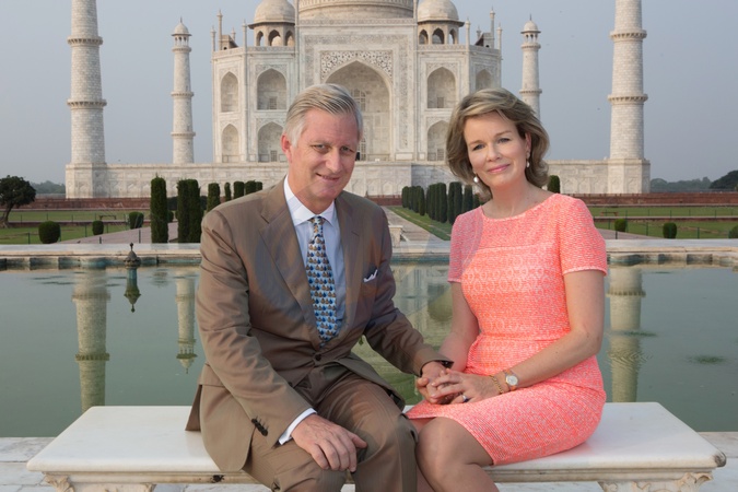 Krolowa Matylda i krol Filip pozuja przy Taj Mahal