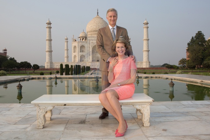 Krolowa Matylda i krol Filip pozuja przy Taj Mahal