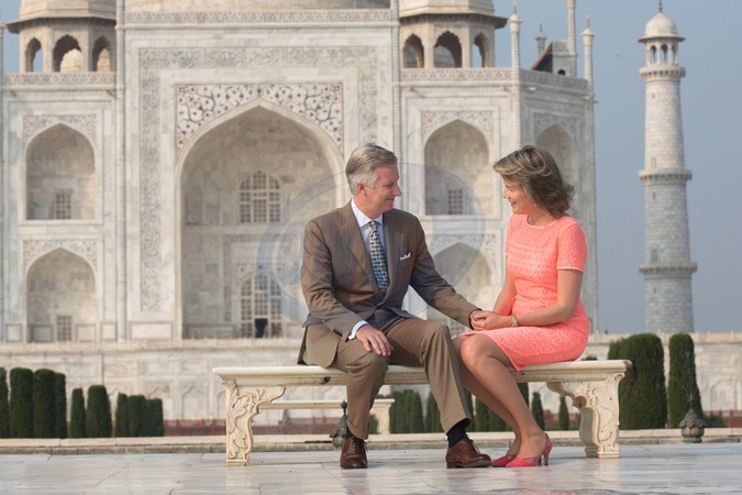 Krolowa Matylda i krol Filip pozuja przy Taj Mahal