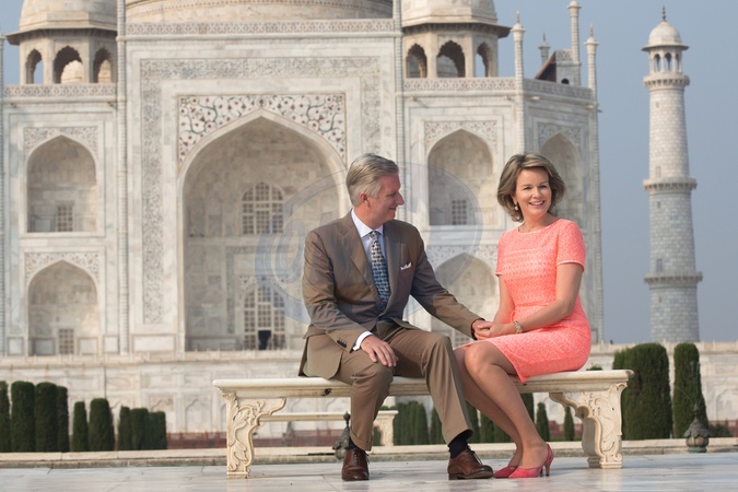 Krolowa Matylda i krol Filip pozuja przy Taj Mahal