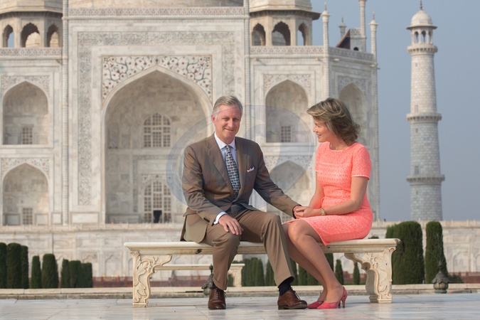 Krolowa Matylda i krol Filip pozuja przy Taj Mahal