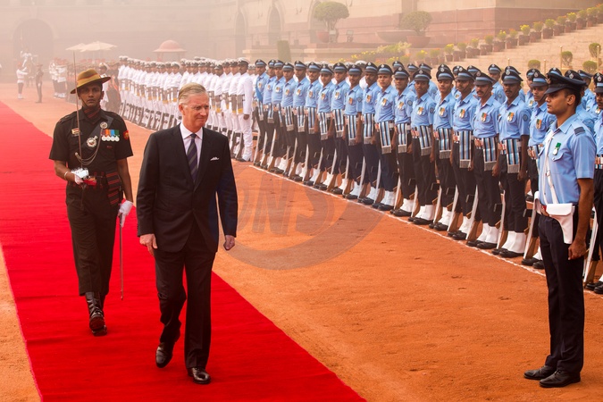 Krolowa Matylda i krol Filip podczas ceremonii powitania w New Delhi