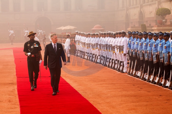 Krolowa Matylda i krol Filip podczas ceremonii powitania w New Delhi