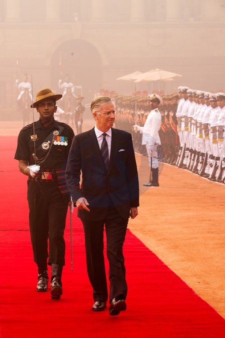 Krolowa Matylda i krol Filip podczas ceremonii powitania w New Delhi
