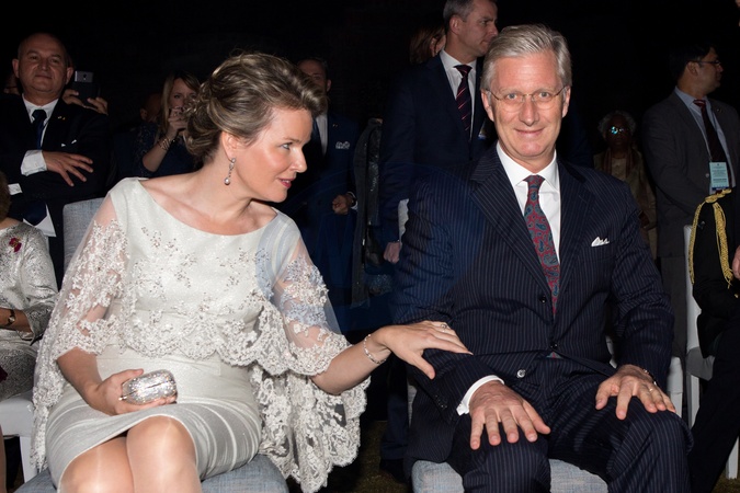 Krolowa Matylda i krol Filip na przyjeciu w ambasadzie Belgii w Indiach