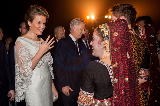 Krolowa Matylda i krol Filip na przyjeciu w ambasadzie Belgii w Indiach