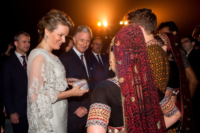Krolowa Matylda i krol Filip na przyjeciu w ambasadzie Belgii w Indiach