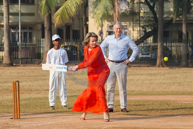 Krolowa Matylda i krol Filip graja w krykieta w Indiach