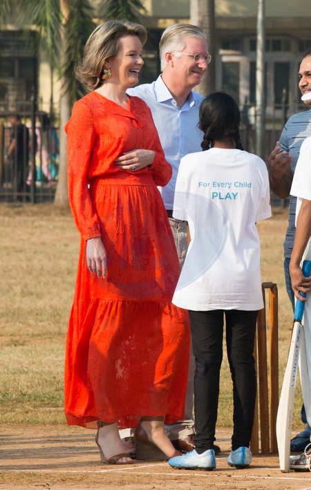 Krolowa Matylda i krol Filip graja w krykieta w Indiach