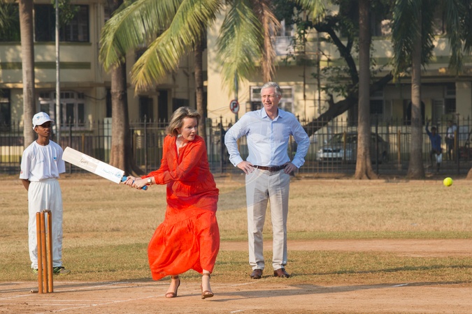 Krolowa Matylda i krol Filip graja w krykieta w Indiach
