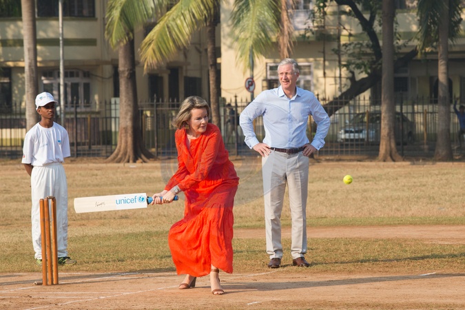 Krolowa Matylda i krol Filip graja w krykieta w Indiach