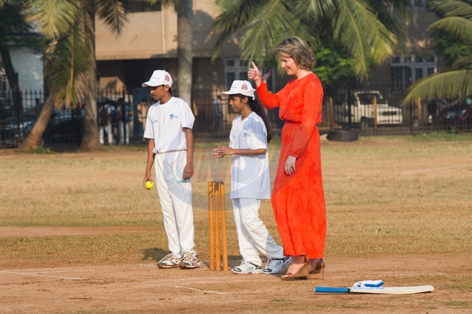 Krolowa Matylda i krol Filip graja w krykieta w Indiach