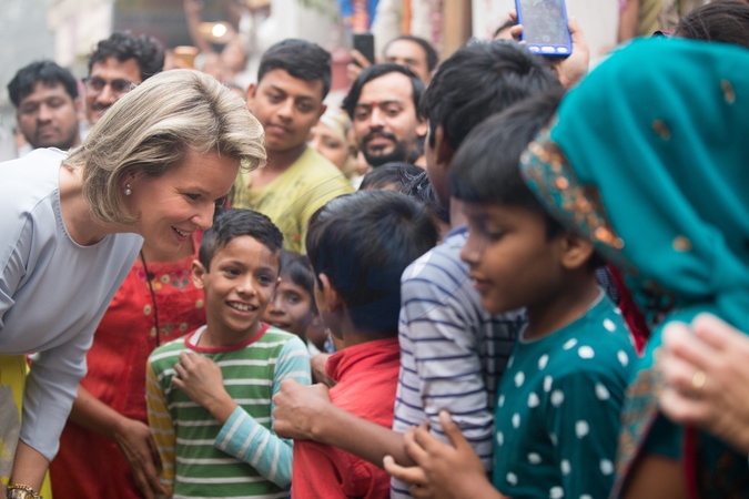 Krolowa Matylda w zoltej spodnicy na ulicach New Delhi