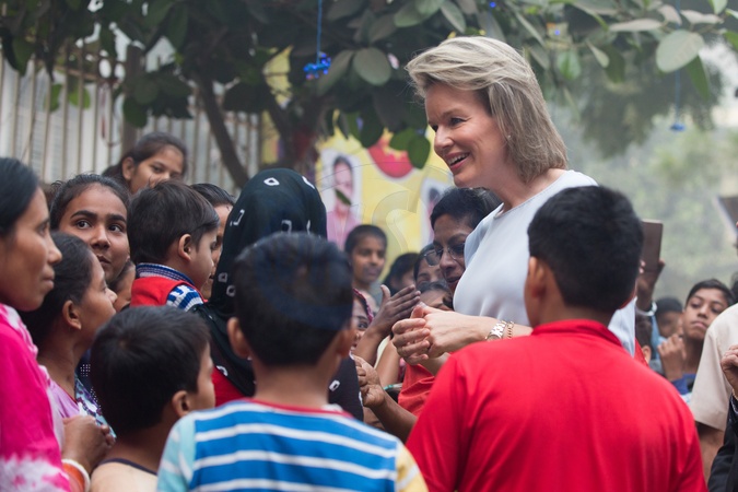 Krolowa Matylda w zoltej spodnicy na ulicach New Delhi