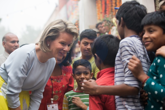 Krolowa Matylda w zoltej spodnicy na ulicach New Delhi