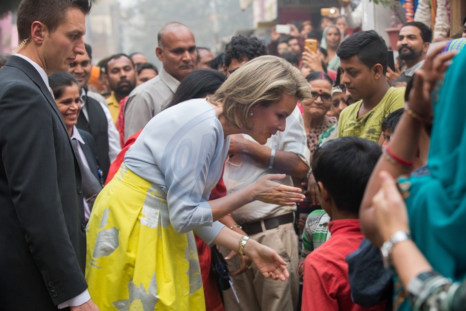 Krolowa Matylda w zoltej spodnicy na ulicach New Delhi