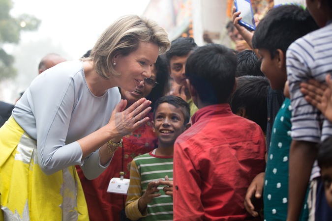Krolowa Matylda w zoltej spodnicy na ulicach New Delhi