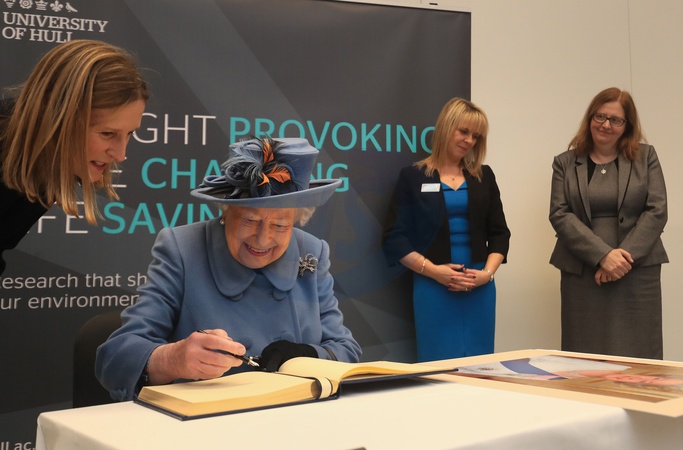 Krolowa Elzbieta II podczas wizyty na Uniwersytecie w Hull