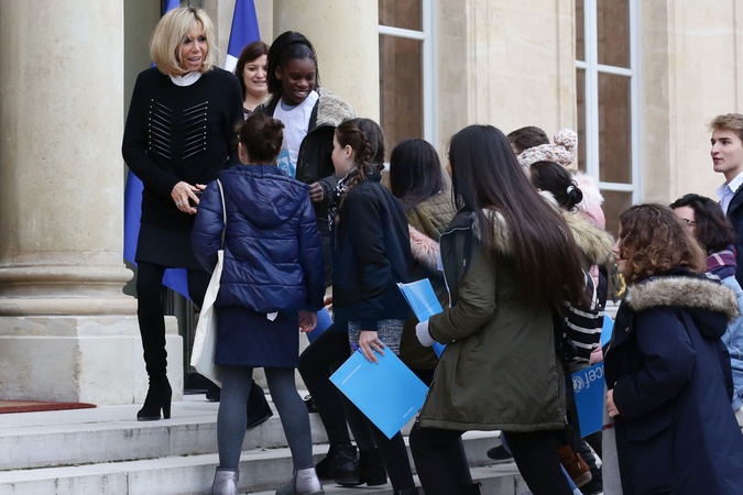 Brigitte Macron i Emmanuel Macron spotkali sie z dziecmi okazji dnia praw dziecka