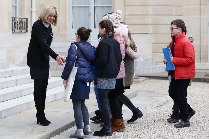 Brigitte Macron i Emmanuel Macron spotkali sie z dziecmi okazji dnia praw dziecka