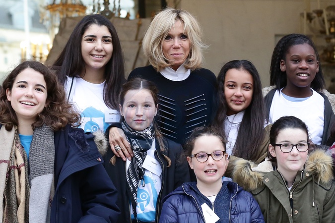 Brigitte Macron i Emmanuel Macron spotkali sie z dziecmi okazji dnia praw dziecka