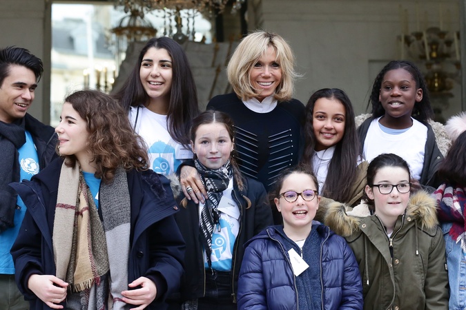 Brigitte Macron i Emmanuel Macron spotkali sie z dziecmi okazji dnia praw dziecka