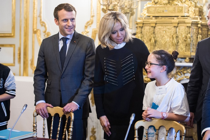 Brigitte Macron i Emmanuel Macron spotkali sie z dziecmi okazji dnia praw dziecka