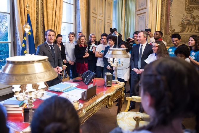 Brigitte Macron i Emmanuel Macron spotkali sie z dziecmi okazji dnia praw dziecka