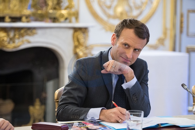 Brigitte Macron i Emmanuel Macron spotkali sie z dziecmi okazji dnia praw dziecka