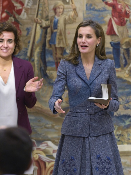 Krolowa Letizia w szarej garsonce na gali wreczenia nagrod