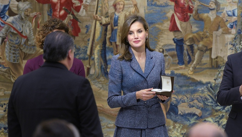 Krolowa Letizia w szarej garsonce na gali wreczenia nagrod