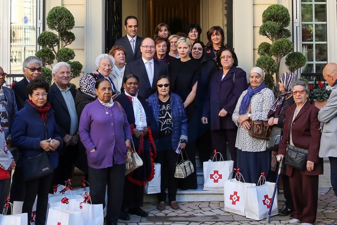 Ksiezna Charlene i ksiaze Albert wreczyli prezenty w siedzibie Czerwonego Krzyza