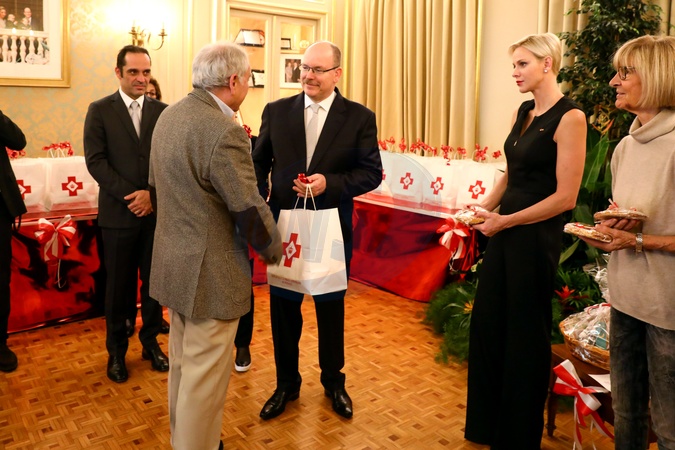Ksiezna Charlene i ksiaze Albert wreczyli prezenty w siedzibie Czerwonego Krzyza