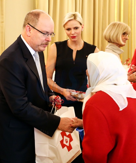 Ksiezna Charlene i ksiaze Albert wreczyli prezenty w siedzibie Czerwonego Krzyza