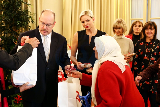 Ksiezna Charlene i ksiaze Albert wreczyli prezenty w siedzibie Czerwonego Krzyza
