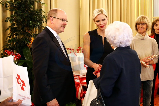 Ksiezna Charlene i ksiaze Albert wreczyli prezenty w siedzibie Czerwonego Krzyza