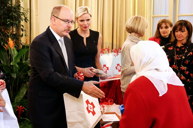 Ksiezna Charlene i ksiaze Albert wreczyli prezenty w siedzibie Czerwonego Krzyza