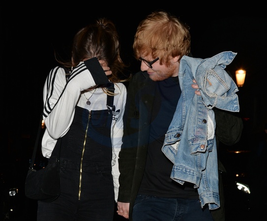 Ed Sheeran i jego dziewczyna Cherry Seaborn zaslaniaja sie przed fotoreporterami