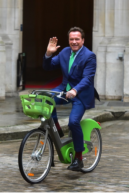 Arnold Schwarzenegger na rowerze w Paryzu