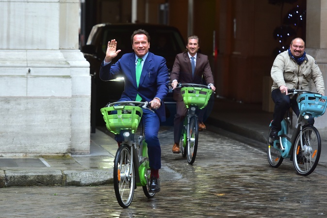 Arnold Schwarzenegger na rowerze w Paryzu