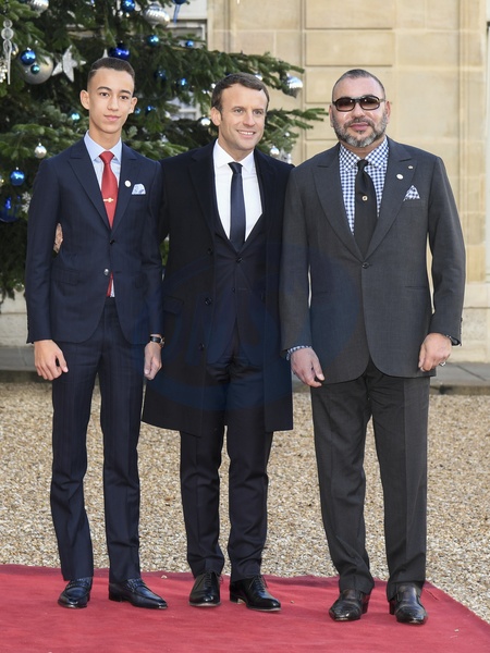Emmanuel Macron, krol Mohammed VI z Maroka, ksiaze Hassan