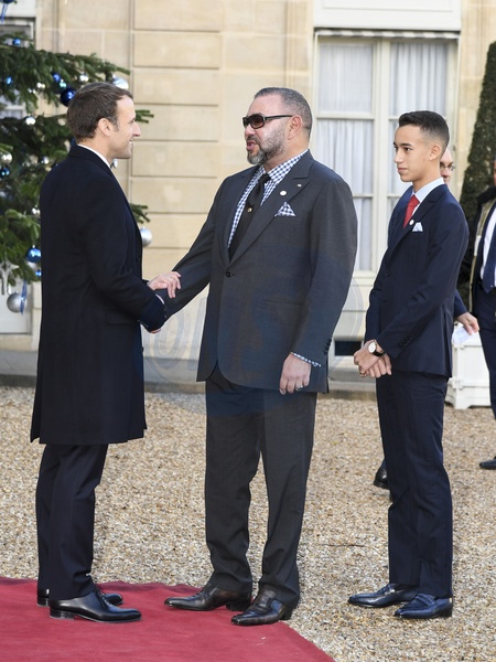 Emmanuel Macron, krol Mohammed VI z Maroka, ksiaze Hassan