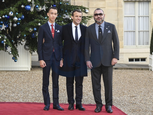 Emmanuel Macron, krol Mohammed VI z Maroka, ksiaze Hassan