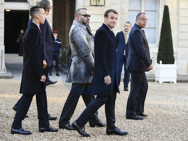 Emmanuel Macron, krol Mohammed VI z Maroka, ksiaze Hassan