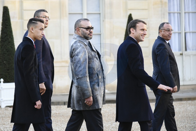 Emmanuel Macron, krol Mohammed VI z Maroka, ksiaze Hassan
