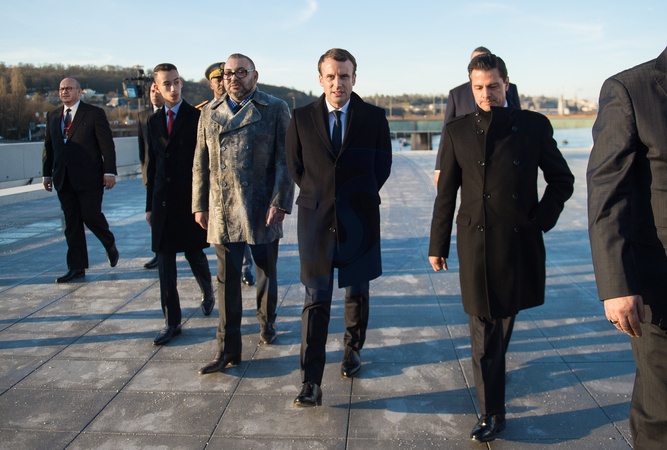 Emmanuel Macron, krol Mohammed VI z Maroka, ksiaze Hassan