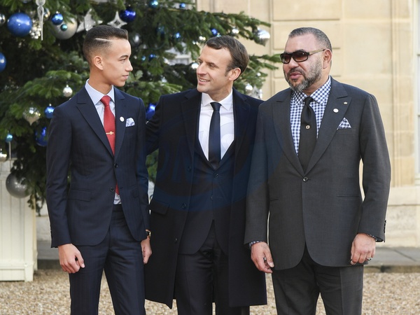 Emmanuel Macron, krol Mohammed VI z Maroka, ksiaze Hassan