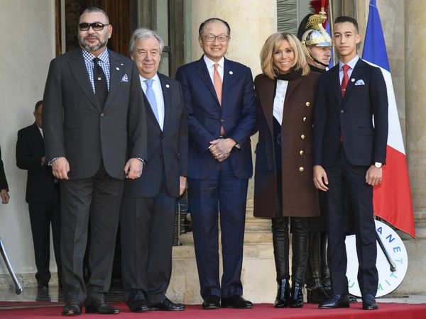 Krol Mohammed VI z Maroka, Antonio Guterres, Jim Yong Kim, Brigitte Macron, ksiaze Hassan