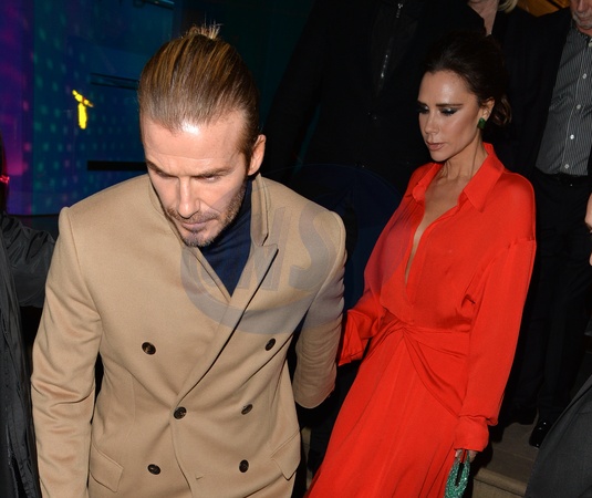 Victoria Beckham i David Beckham wychodza z Connaught Hotel
